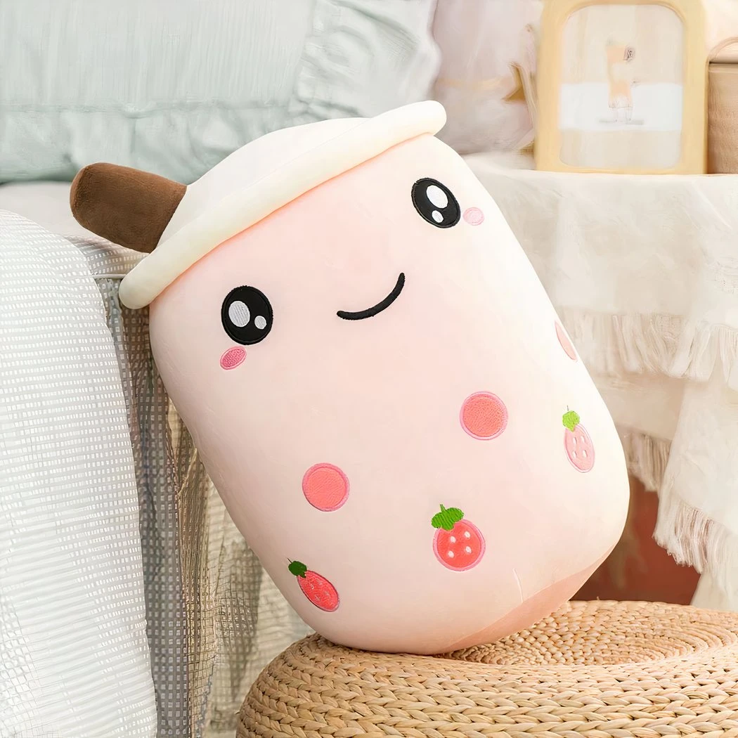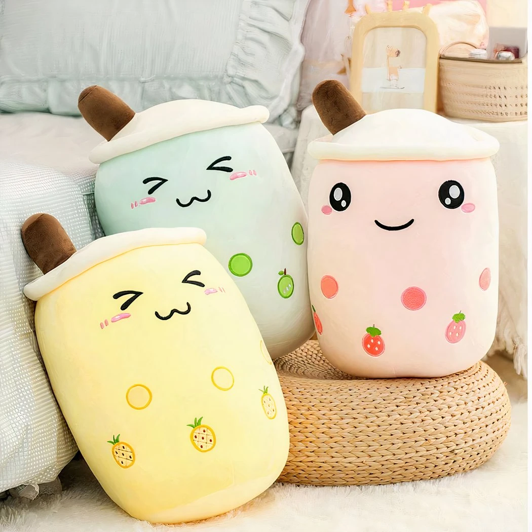 Parfaite pour les enfants et les adultes qui aiment les bubble tea. Elle est faite en tissu doux et est remplie de coton qui rendent le coussin moelleux et confortable.
