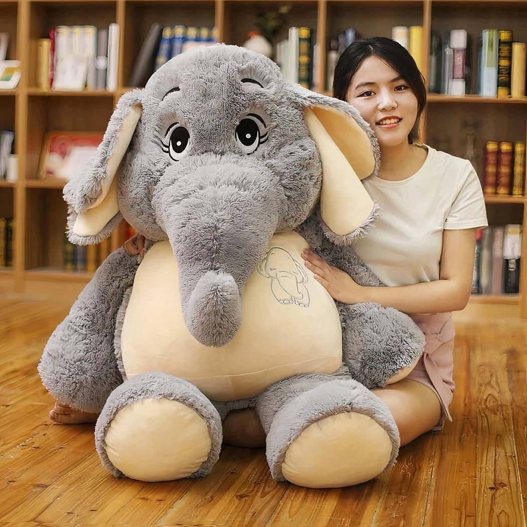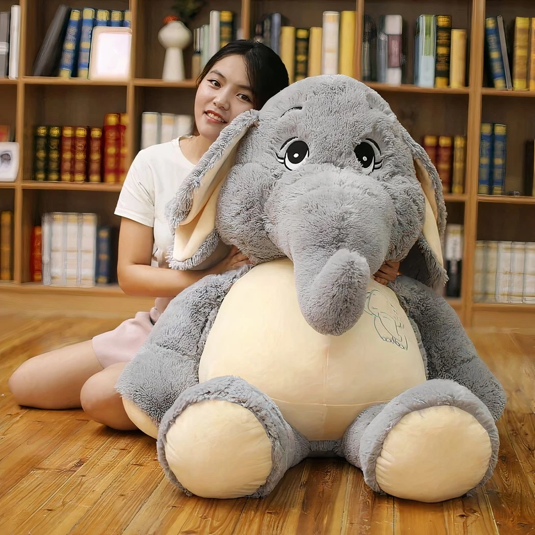Cette grande peluche éléphant adore se reposer sur votre lit le soir. Il a de grandes oreilles sensibles pour écouter votre voix dans une chanson berceuse.