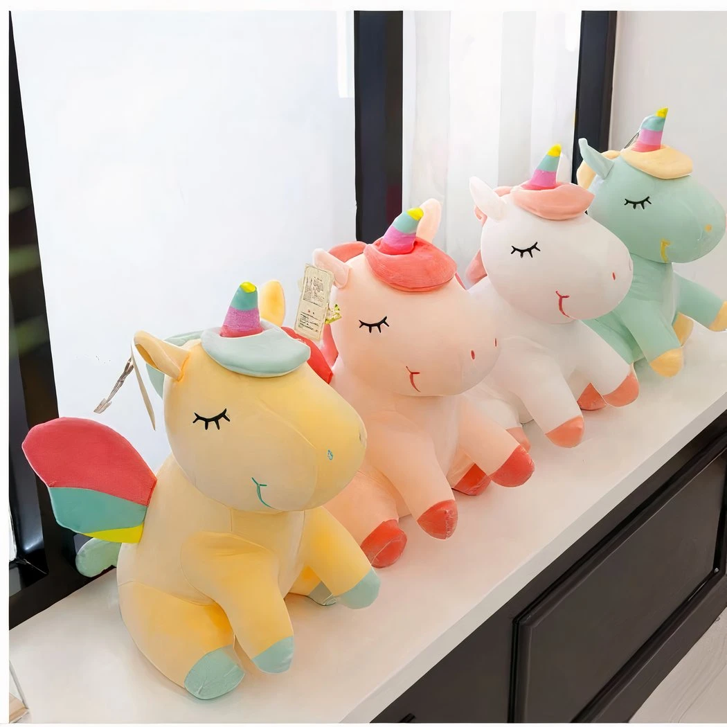 Grâce au pouvoir magique de la peluche, votre petite fille ou petit garçon inventera chaque jour des histoires et développera son imaginaire tout en s’amusant. Alors offrez lui cette peluche licorne de couleur jaune arc-en-ciel symbole d’amour pure… Cette peluche licorne est fabriquée avec des matériaux de haute qualité et est extrêmement douce et câline.