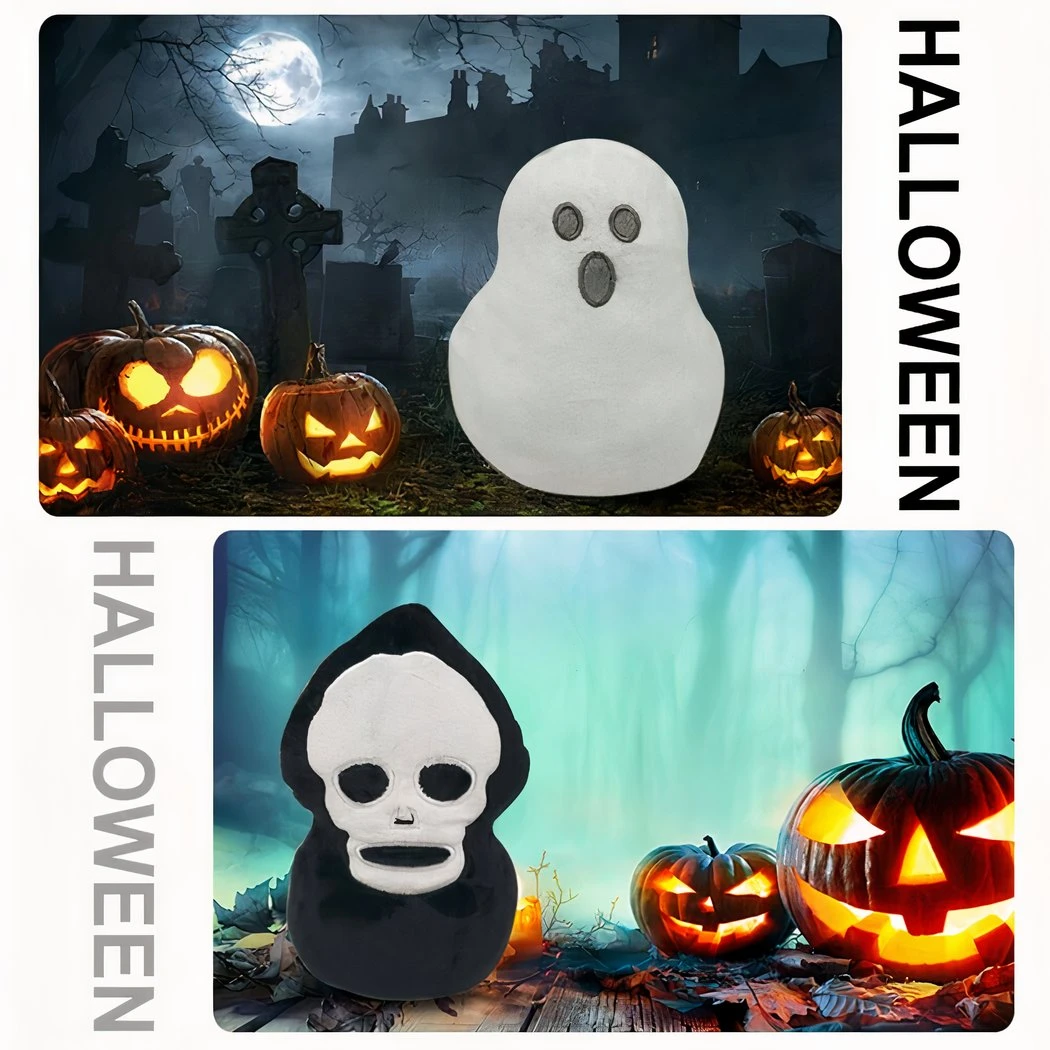 Votre enfant va inventer l’histoire du mignon fantôme qui pourchassera la tête de mort de son territoire avec cette peluche. Sa soirée sera amusante et relaxante avec cette fascinante peluche. Les amateurs de peluches gothiques adoreront cette peluche réversible avec un fantôme d’un côté et une tête de mort de l’autre ! Cette peluche est parfaite pour les amateurs de décoration d’Halloween et de gothique en tous genres.